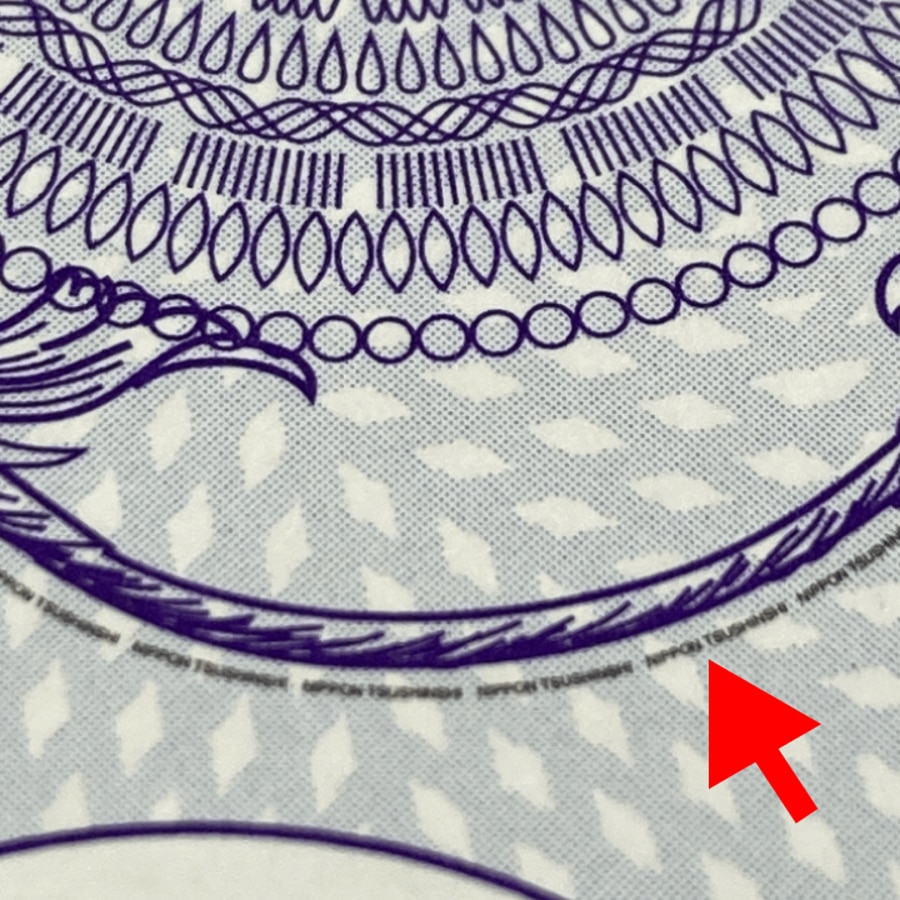 さらに、「パールインキ」や「マイクロ文字」、そして「高精細すき入れ(すかし)」など、従来の技術を進化させた偽造防止印刷が施されています。