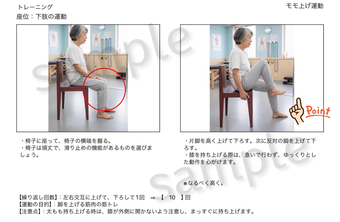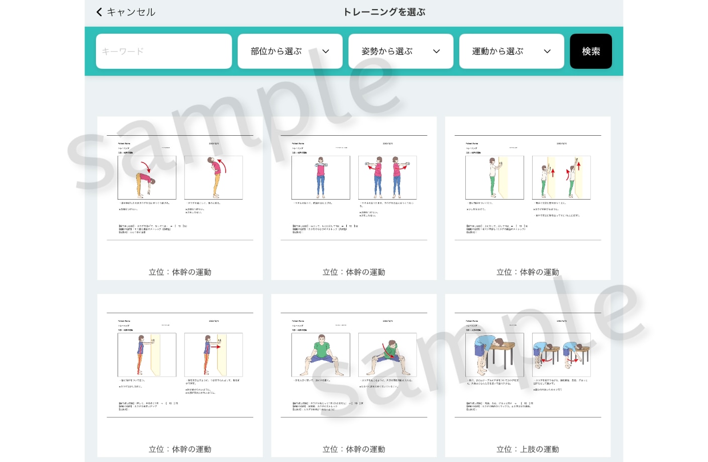理学療法士の業務を劇的に効率化。テンプレートを選んで組み合わせるだけで、見栄えの良い指導書が完成します。