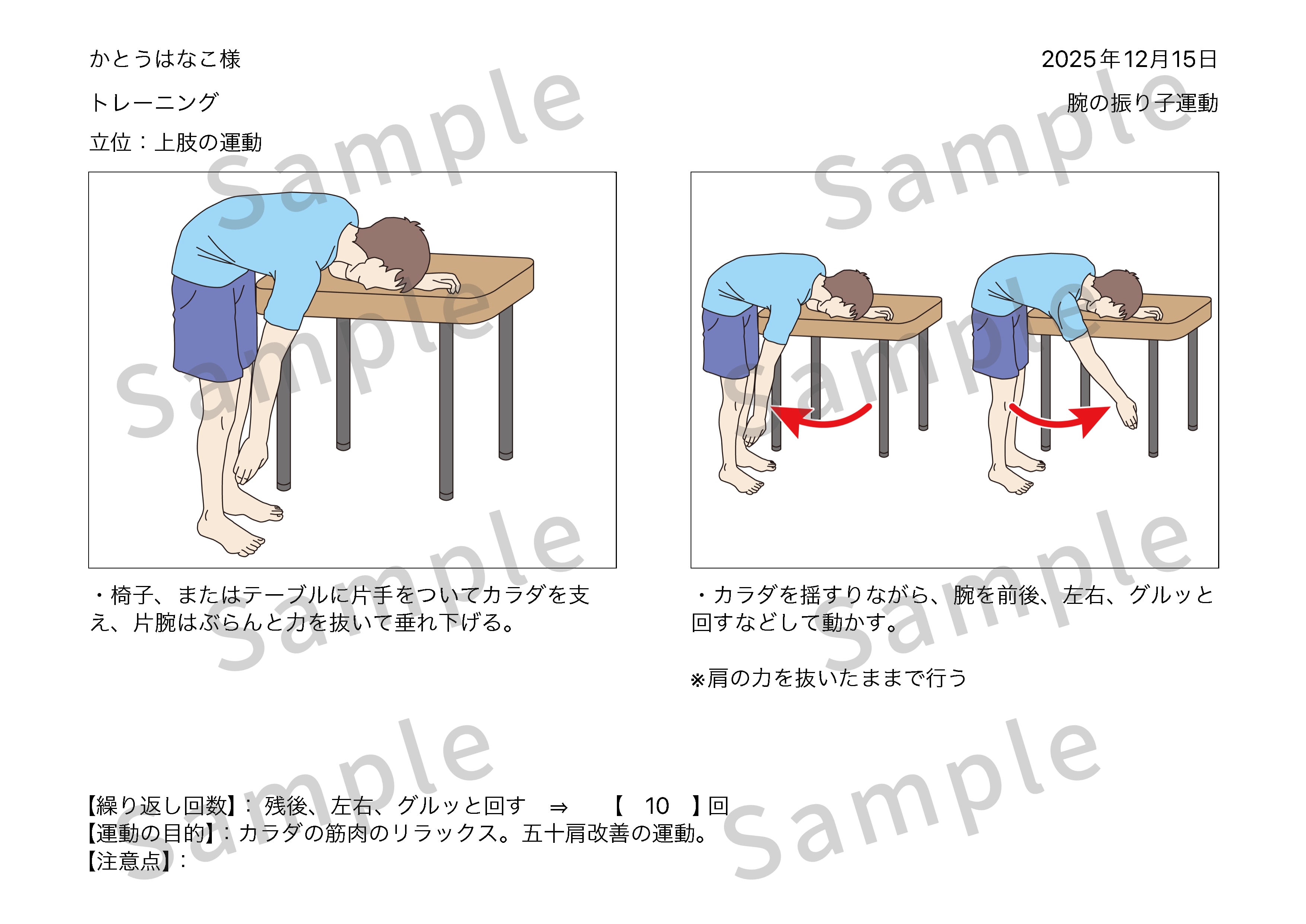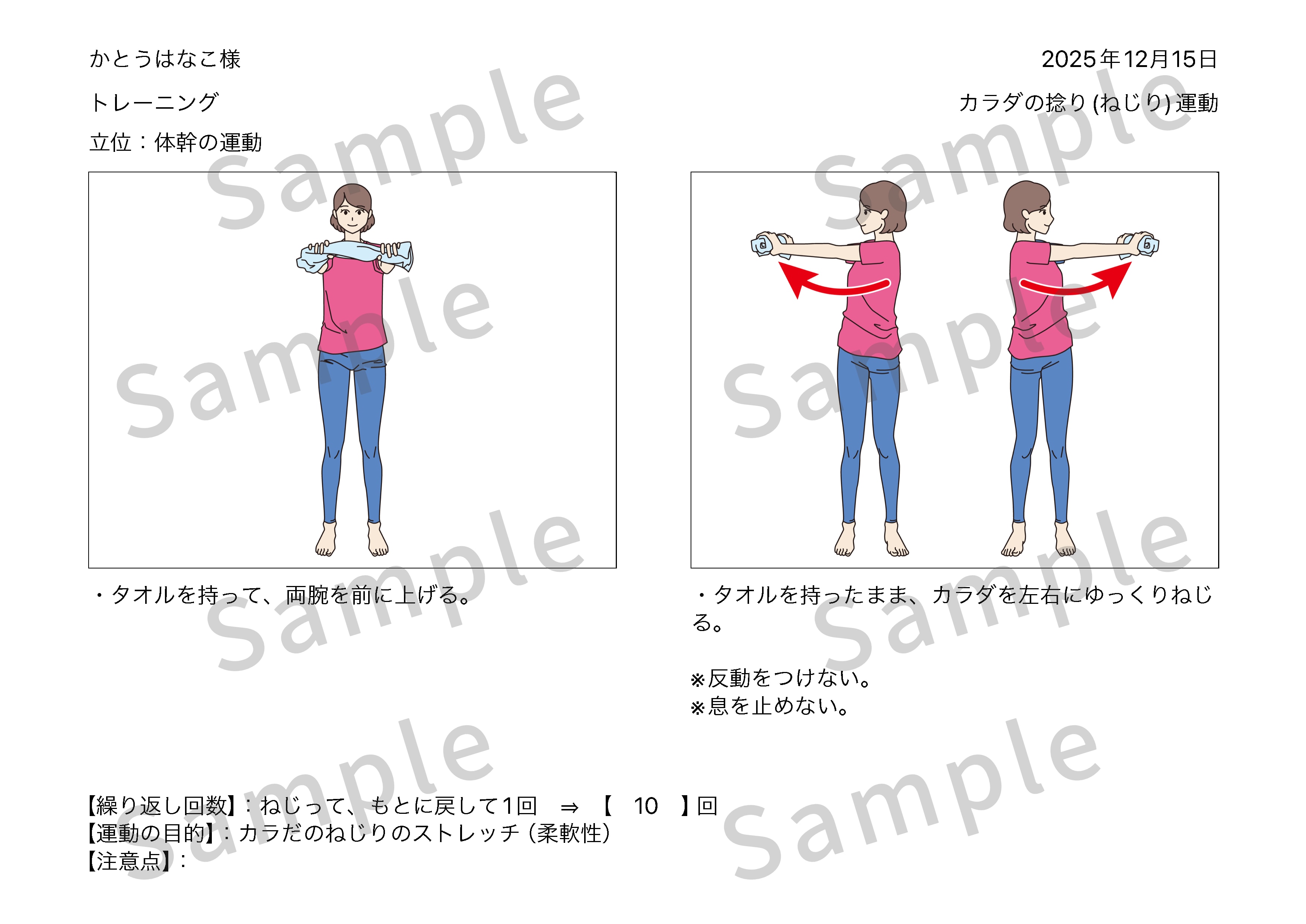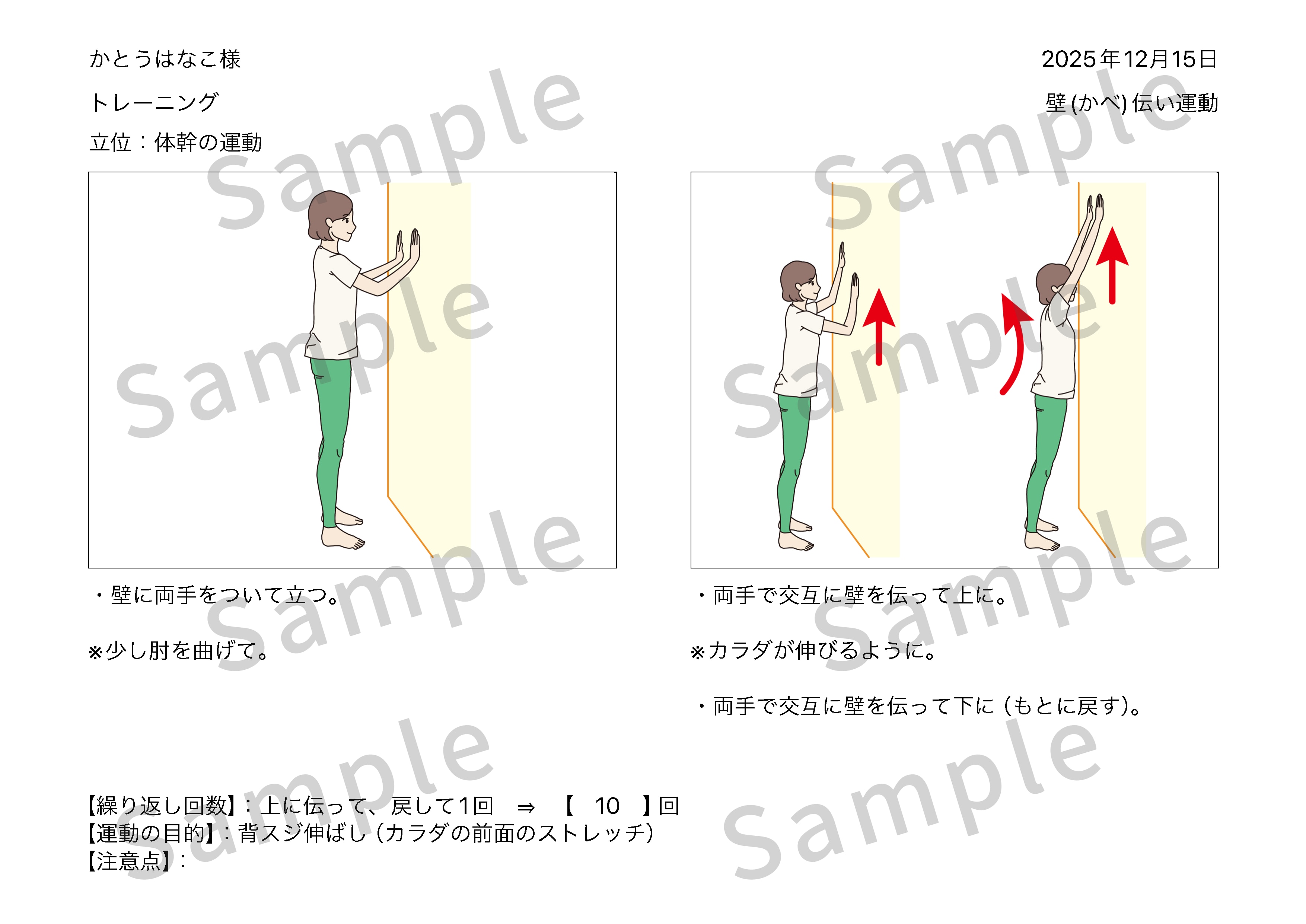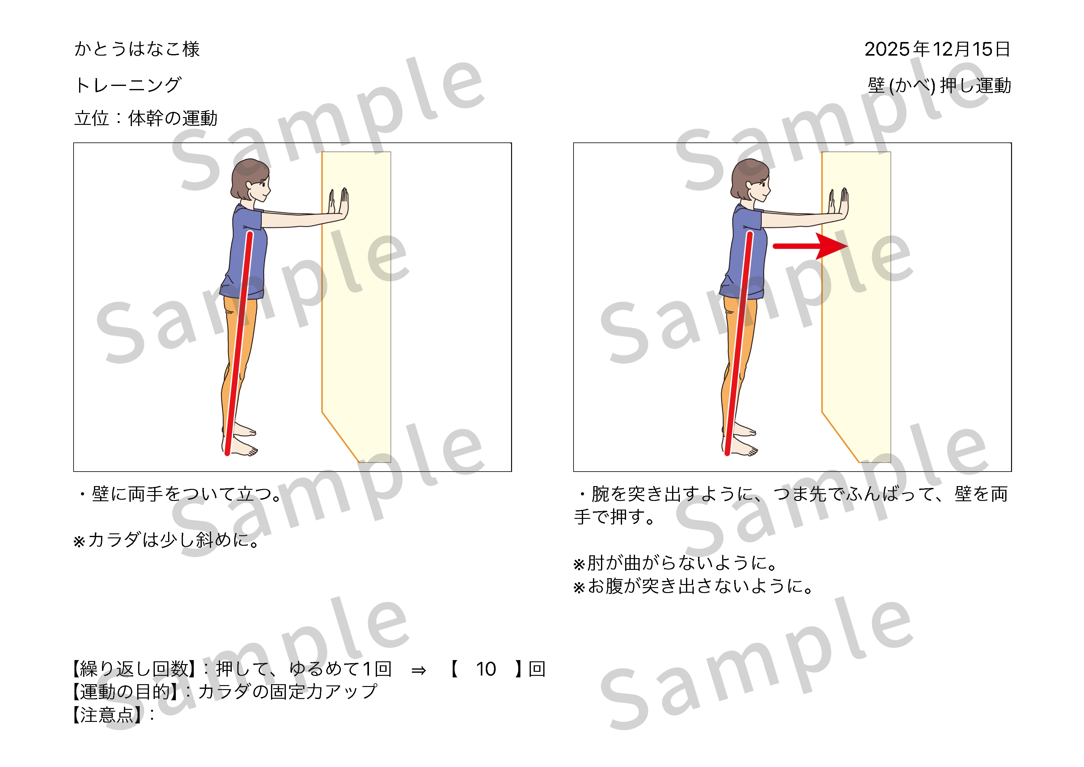 テンプレートを選んで組み合わせるだけで、見栄えの良い指導書が完成します。理学療法士の業務を劇的に効率化します。